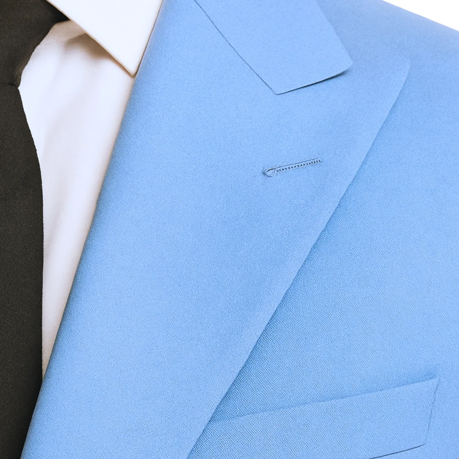The Ideal 2-Button Peak Lapel Suit in Powder Blue offers a soft, refreshing look with modern comfort. Crafted from 4-way stretch fabric, this suit allows for flexibility and ease of movement while maintaining a sharp, polished appearance.
