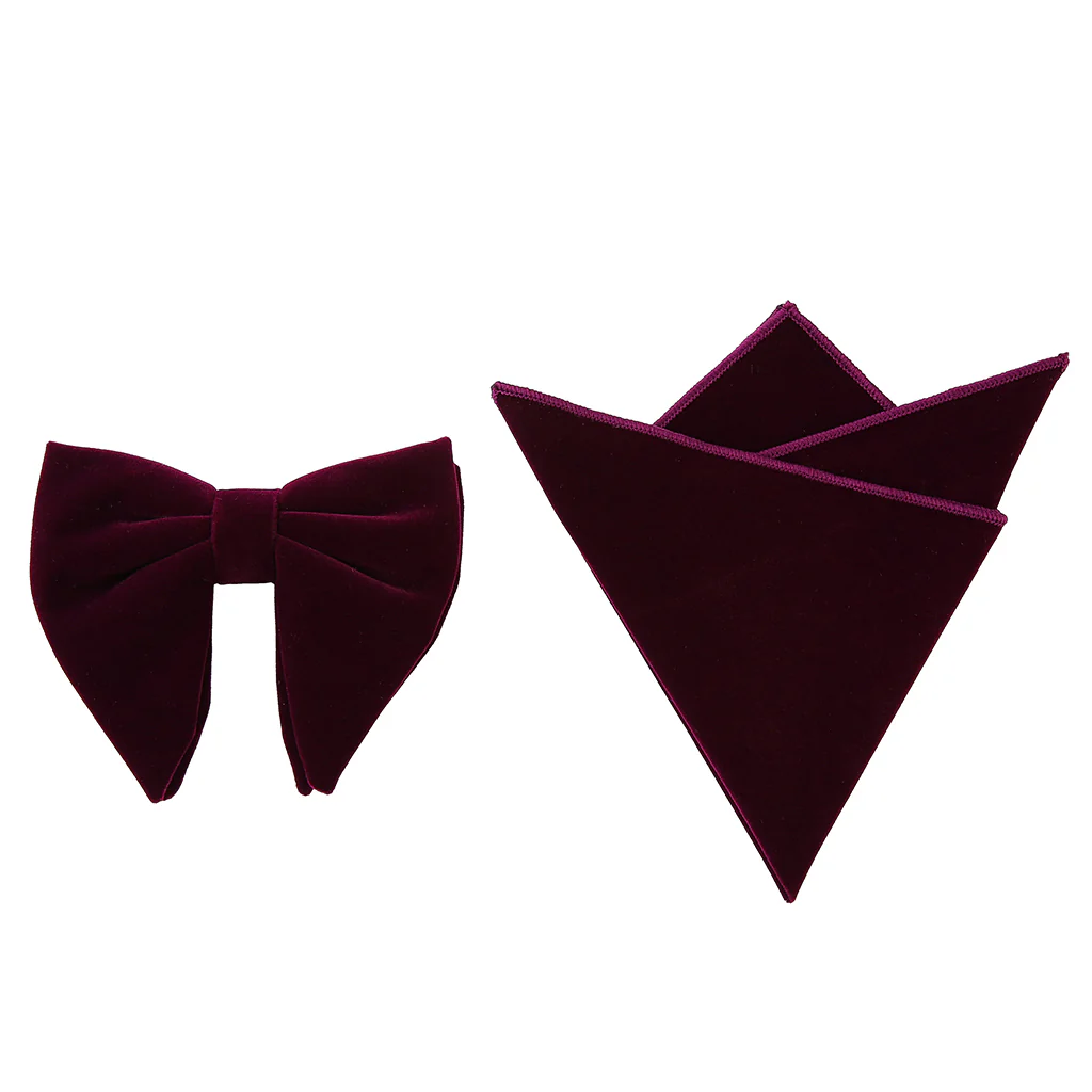 Includes: 1 pre-tied velvet bowtie with satin drop & 1 matching pocket square